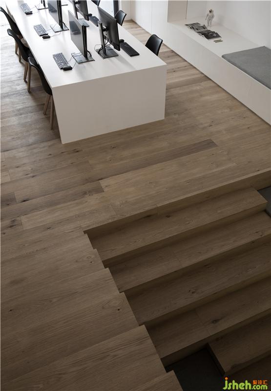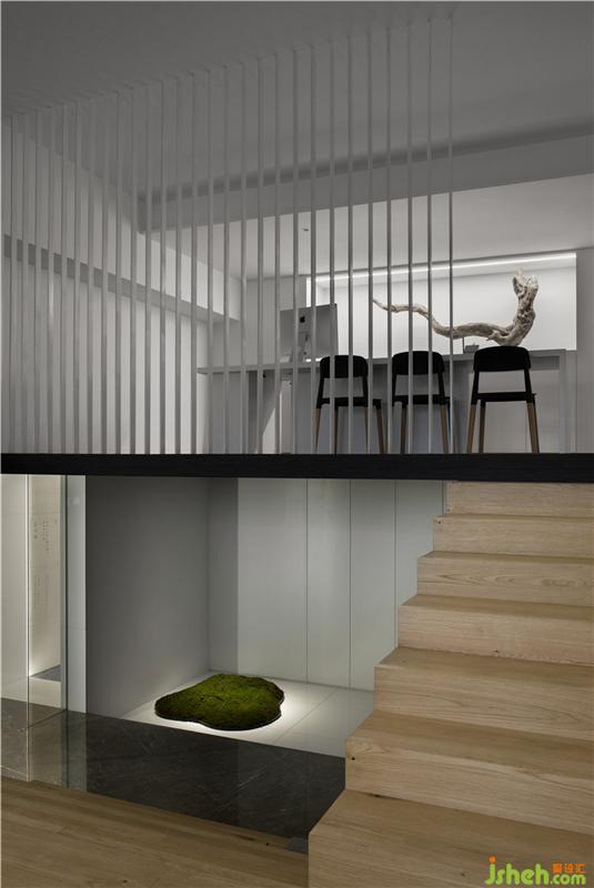 沿著光的指引,我們首先進(jìn)入左邊的空間,這是屬于設(shè)計(jì)部的區(qū)域。溫潤的原木、空曠的白、冷峻的灰,還有那一角綠色的青苔,都能讓心馬上平靜下來;為了讓辦公區(qū)得到更好的視野、光線和合理的空間比例,我們提升了辦公區(qū)域的地面,辦公室設(shè)計(jì)下面作為儲(chǔ)物間和設(shè)備間,這樣即豐富了空間的層次,又解決了收納的問題;利用高度差,從入口到辦公區(qū)域的樓梯設(shè)計(jì)成可休閑看書,可臨時(shí)變成會(huì)議室的多功能區(qū)域;而辦公區(qū)域上空懸吊著那條猶如藝術(shù)裝置的物體,這是可根據(jù)功能需求、調(diào)節(jié)燈光色溫和亮度的燈具,隨著工作的心情變換工作的氛圍。