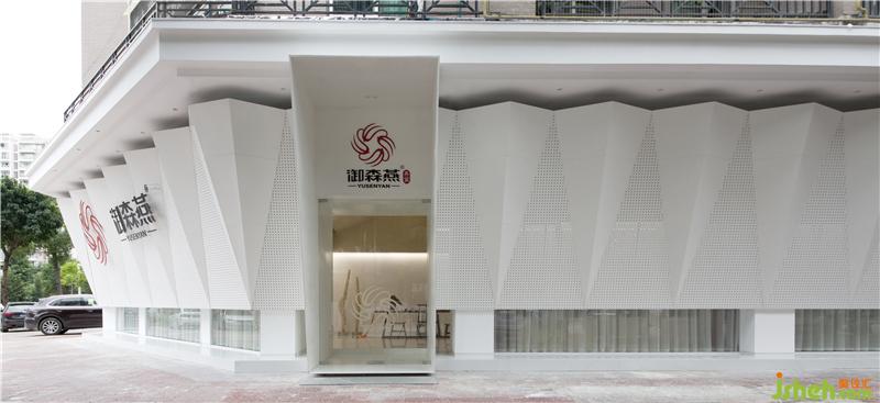 御森燕的設(shè)計理念來源于家。燕窩,也就是燕子的家,御森燕的家在莆田,而莆田的傳統(tǒng)民居由于時代的發(fā)展,已經(jīng)慢慢成了很多人的童年記憶;為了傳承這種文化記憶,我們從莆田傳統(tǒng)民居的屋頂提取了“燕尾脊”的概念,并用現(xiàn)代設(shè)計的手法,把這種文化符號轉(zhuǎn)換成現(xiàn)代人所容易接受的幾何圖形,并在其他的空間延續(xù)。裝修設(shè)計