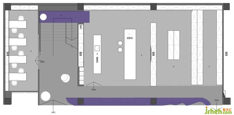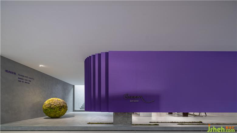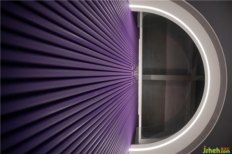 本案占地六個門店,但由于視覺不統(tǒng)一,無法凸顯。商場中人來人往,喧囂嘈雜,如何強(qiáng)調(diào)展廳設(shè)計(jì)的存在感和統(tǒng)一性?這片有著輕奢神秘感的紫由是出現(xiàn)。強(qiáng)烈的存在感,又帶著沉靜的氣息,吸引著好奇本能。