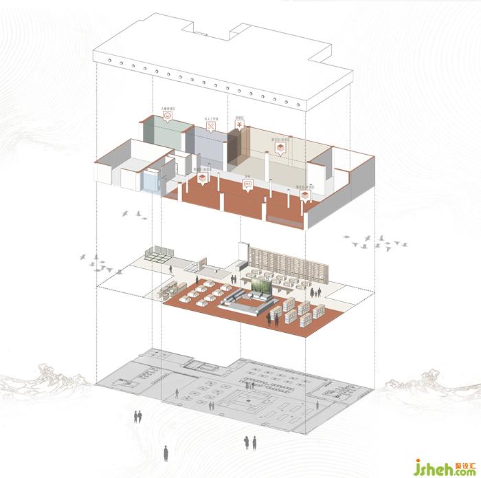 為此,在分析空間屬性、功能需求及場(chǎng)域的主要使用人群后,我們將閩南文化、多功能性、開放性等作為空間營(yíng)造的方向,機(jī)場(chǎng)館設(shè)計(jì)并延續(xù)“母親的房子”圖書館的脈絡(luò),為其引入了獨(dú)具閩南特色的元素,使空間兼具文化傳播的場(chǎng)域?qū)傩浴?