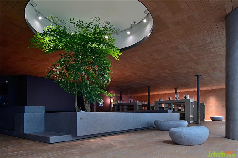 在空間中央,機(jī)場館設(shè)計(jì)師采用地面局部墊高和中心區(qū)域加高與下沉的方式,將曬谷場的概念幻化成為開放式講堂區(qū)。
