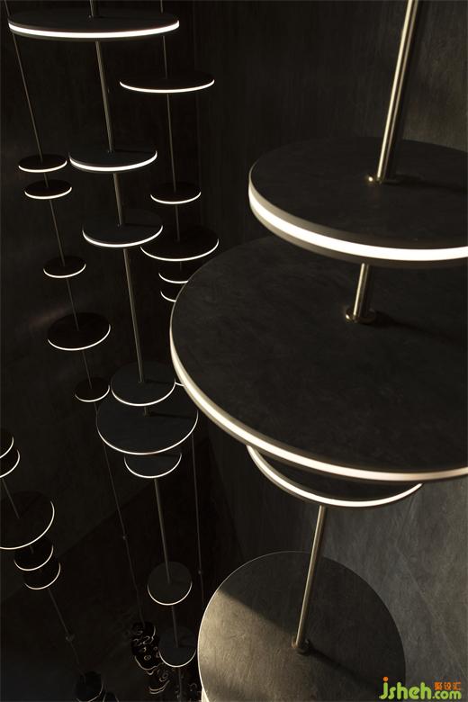 建筑內構、裝置藝術、光影美學等手法,皆被納入空間的表達,讓空間跳脫出形式本身的靜態(tài)桎梏,人隨光行,由視覺牽引著行走,形成了空間動線上的延伸感。