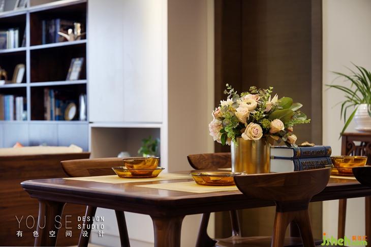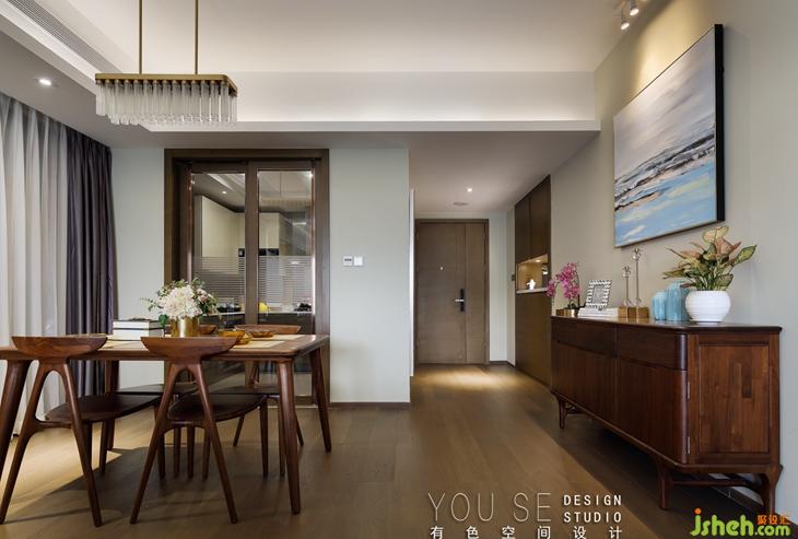 簡約的餐桌風格,配上頂部現(xiàn)代風的吊燈,唯愛與美食不可辜負。
