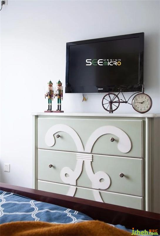 主臥給人以素雅、自然之感——生態(tài)的原木地板、生氣盎然的花卉墻紙與舒適柔軟的印花床品以大地色、綠色、藍色構(gòu)成了空間主基調(diào)。裝修設(shè)計