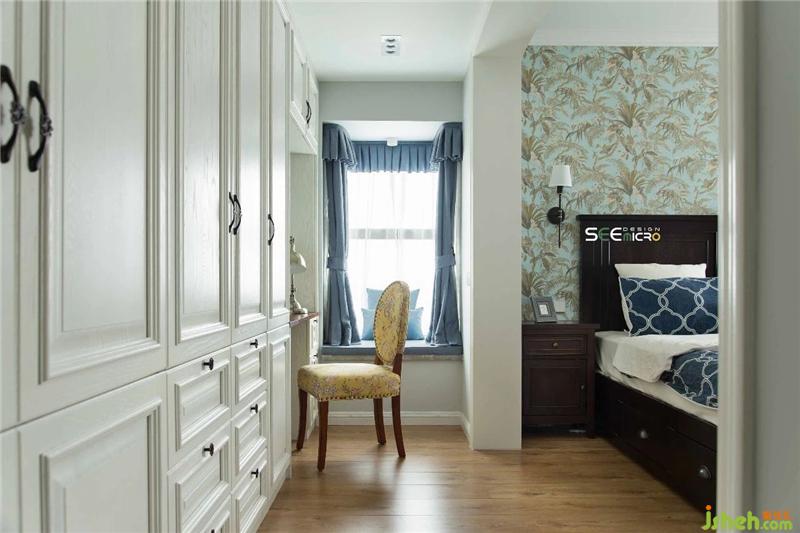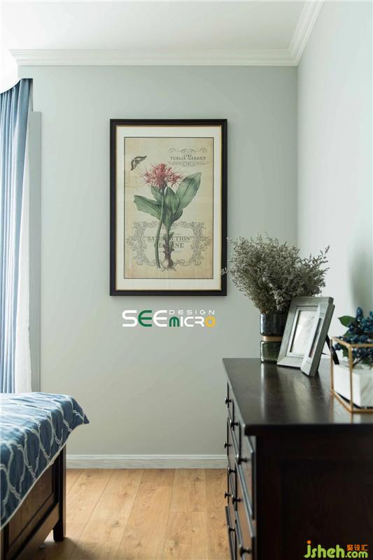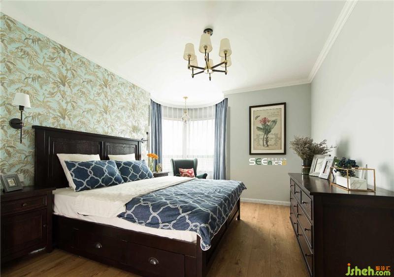主臥床頭背景墻搭配古典美式大床,內(nèi)斂安靜,飽含韻味,古典與優(yōu)雅兩相宜,和諧的色彩搭配營(yíng)造出溫馨恬靜的舒適環(huán)境。