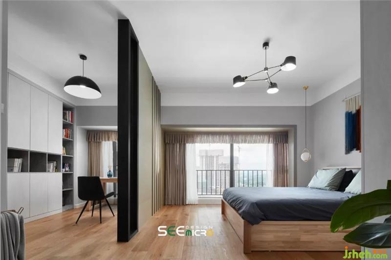 臥室是一個可以完全放松的空間,布局簡單實用,大落地窗給予了整個空間的采光,整體以灰色調(diào)及簡潔的飾品點綴,提升空間質(zhì)地。