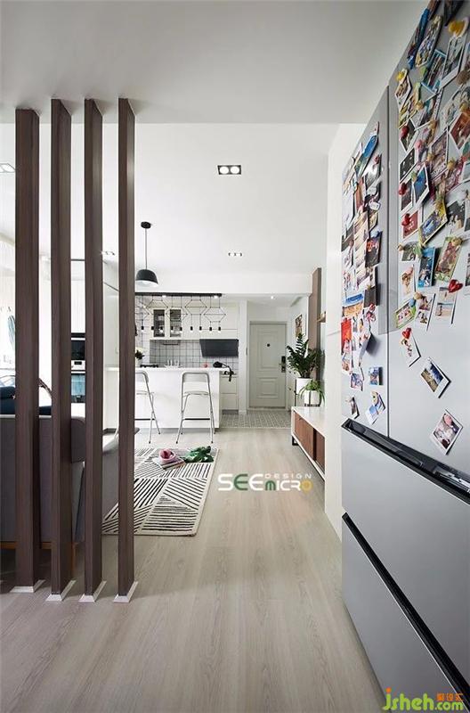 大冰箱的安置通常是小戶型設計的頭疼之處,其實將冰箱隱藏在大高柜里也不失為一個好方法。裝修設計