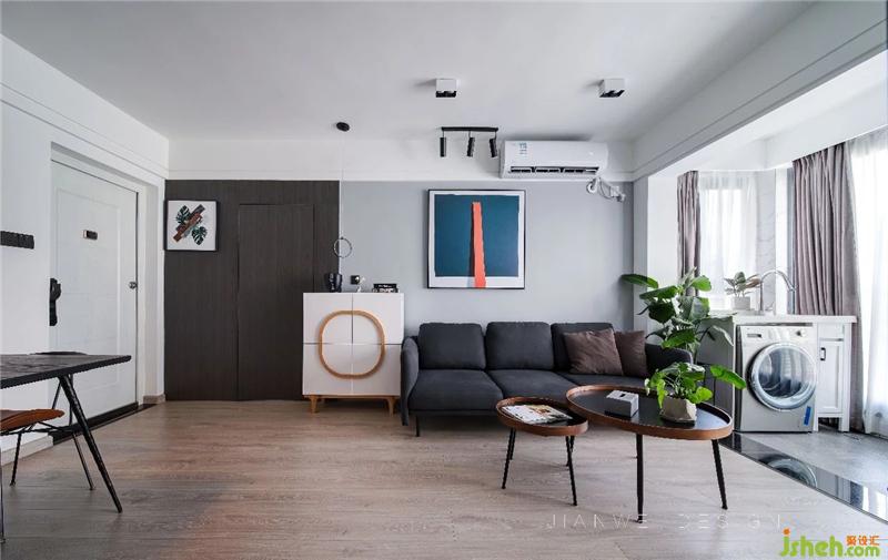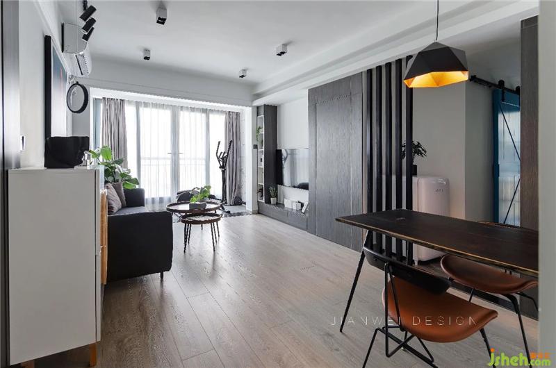 1.打掉兩側(cè)過(guò)厚的墻體,拆除陽(yáng)臺(tái)門,將陽(yáng)臺(tái)客廳餐廳一體化,增大客廳面積