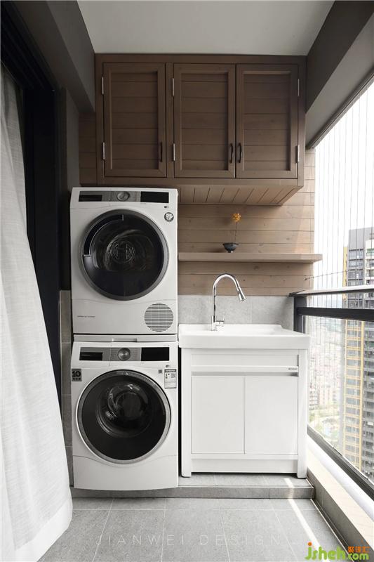 除了洗烘衣物,我們還改造出了洗漱區(qū),除了有大容量的收納吊柜,還將整墻柜的中間部分設(shè)計(jì)成開放格,擺放洗漱用品,搭配洗手盆,這樣的洗漱區(qū)還自帶風(fēng)景,有點(diǎn)五星級(jí)的feel。裝修設(shè)計(jì)