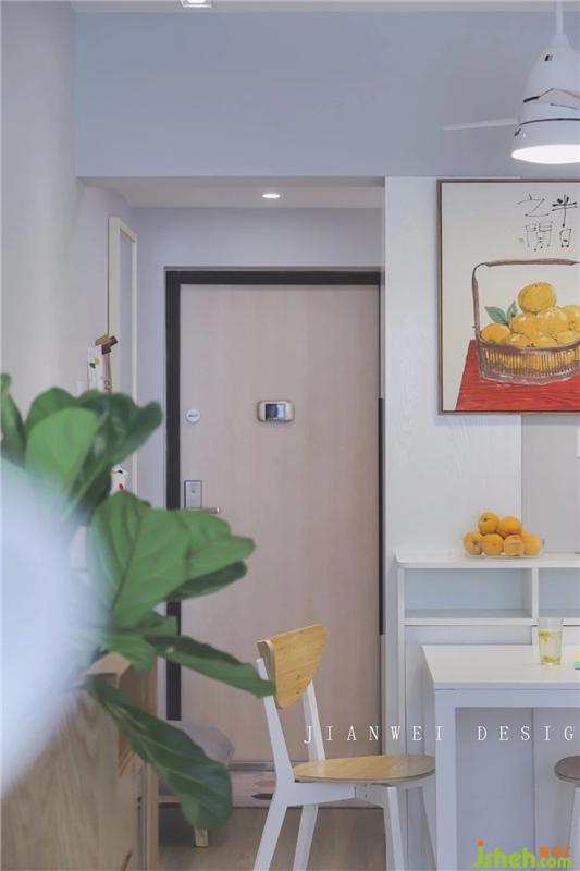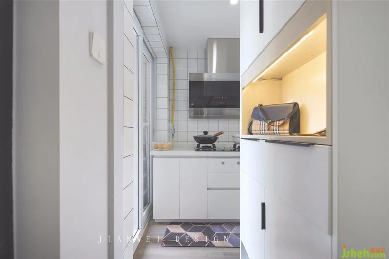 包裹住原煙道柱的收納柜,同時實現(xiàn)門廳廚房雙通道流線。