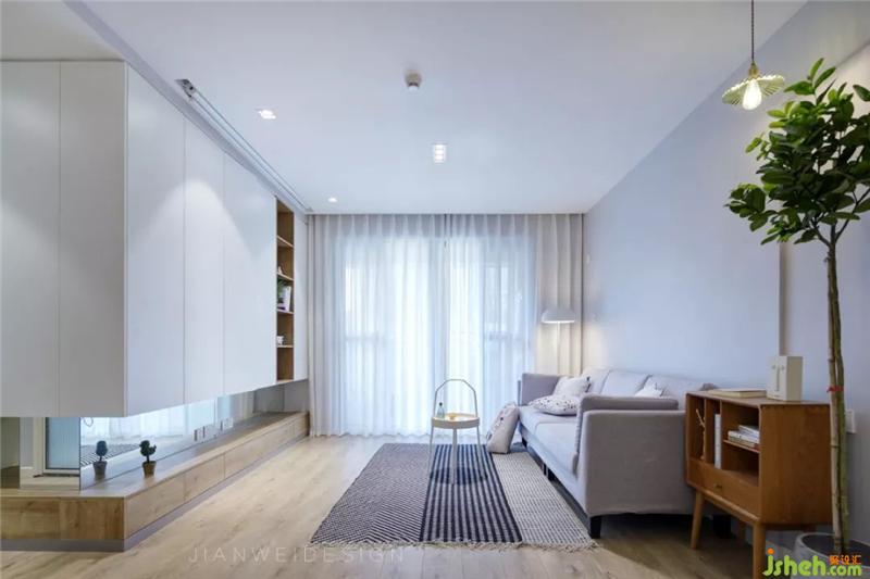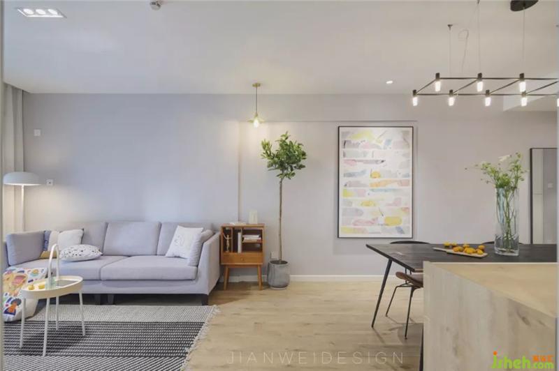 女屋主是理科高材生,男屋主是金融類從業(yè)者,希望新家溫馨、素凈、淡雅,但不要過(guò)多污染硬裝,傾向于環(huán)保而又有設(shè)計(jì)感的家。設(shè)計(jì)師選用了飽和度低,視覺(jué)感受更加柔和的莫蘭迪色,能給人以極溫柔的精神慰藉。
