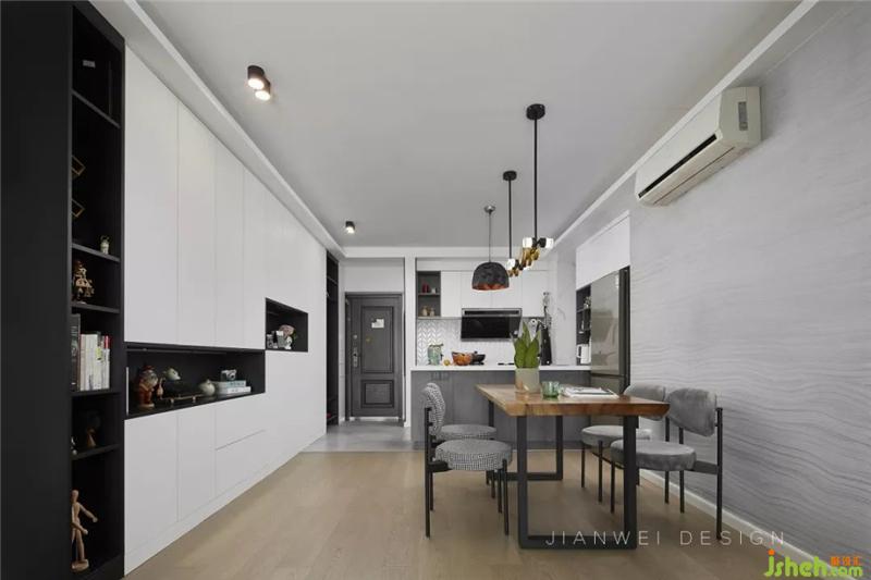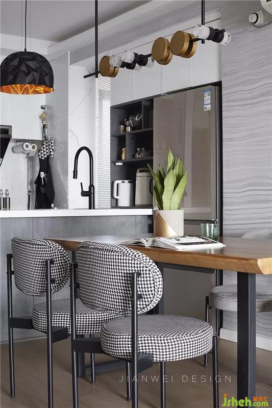 在黑白灰的空間里,搭配溫潤(rùn)的木質(zhì)元素進(jìn)行調(diào)和,讓整個(gè)空間變得豐富又和諧。
