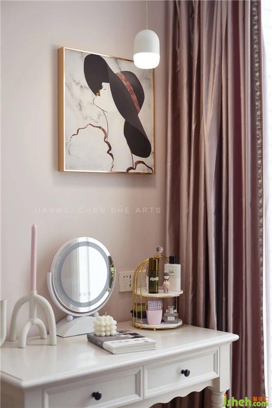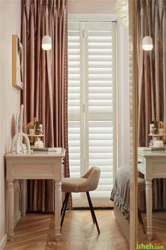 梳妝臺(tái)采用純白色的原木材料,與室內(nèi)色調(diào)完美融合,統(tǒng)一且溫馨。