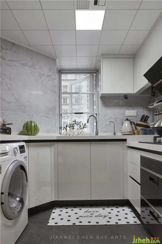 廚房采用了黑白灰極簡設(shè)計(jì),不僅看著整齊、干凈,而且具有滿滿的時(shí)尚感。室內(nèi)設(shè)計(jì)師