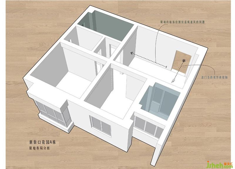 次臥長度距離過短,影響床的放置,將與之相鄰的公衛(wèi)厚墻改為薄墻,以此延伸次臥長度,更好的利用空間深圳室內(nèi)裝修設(shè)計。