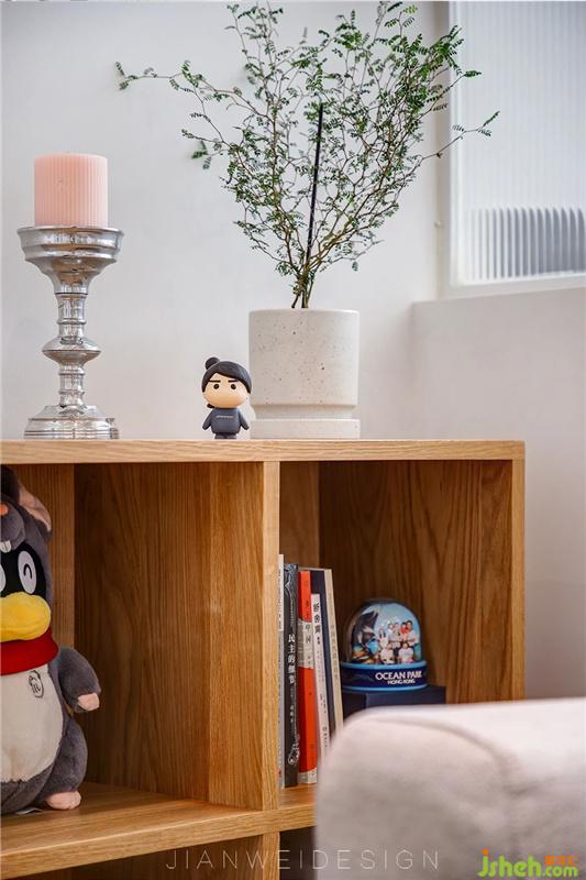 窗臺下的邊柜精致小巧,可以在這個架子上放上自己喜歡的書籍和小擺件