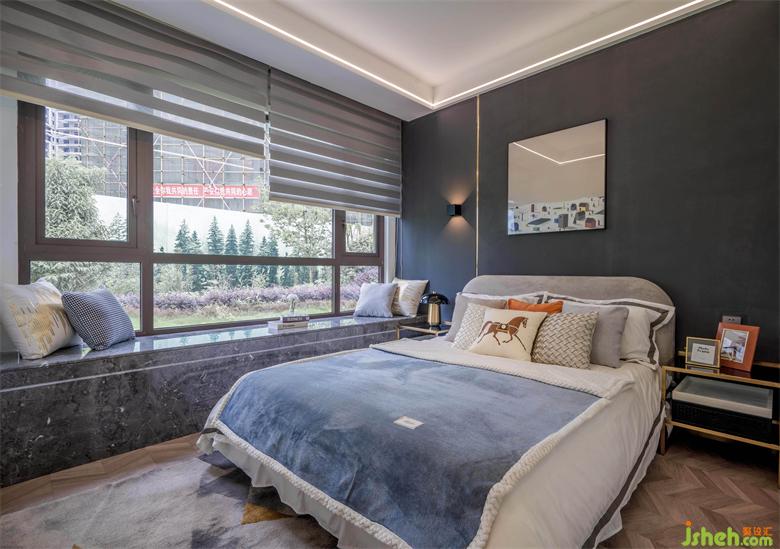 白色搭配活潑藍(lán)色,暖色的床頭燈與窗外的月光呼應(yīng),連孩子的夢(mèng)都是斑斕的。