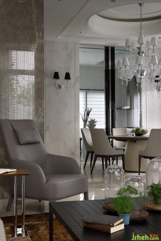 蒙太奇的陳設(shè)手法傳遞出蘊(yùn)函不同化特質(zhì)的雅,本案室內(nèi)設(shè)計(jì)師設(shè)計(jì)以蒙太奇減法設(shè)計(jì)創(chuàng)造簡約大器的生活氛圍,空間依別墅樓層由下而上循序安排公共空間、主臥樓層、小孩寢居樓層及休閑娛樂樓層。精致的大理石鋪陳出客餐廳的大器奢華質(zhì)感,適當(dāng)?shù)睦苗R面材質(zhì)結(jié)合時(shí)尚品味,在屬于西方的簡約線條中帶入東方柔和不張揚(yáng)的色調(diào),為空間注入人文美學(xué)的優(yōu)雅,像一位沉浸于東西方文化的紳仕,個(gè)性溫文儒雅,態(tài)度從容沉穩(wěn)謙和有禮,與他相處你會(huì)卸下心防,感到坦然而自在,室內(nèi)設(shè)計(jì)師進(jìn)而樂于分享生活的美好??筒蛷d空間雖然各自獨(dú)立,卻藉由動(dòng)線與視線串連,隔間墻面、過度轉(zhuǎn)角區(qū)域皆能看到量身打造的藝品陳設(shè)細(xì)節(jié),在動(dòng)、視線牽引下彼此借景相融,無論從那個(gè)角度觀賞都是一幅美好的畫作。