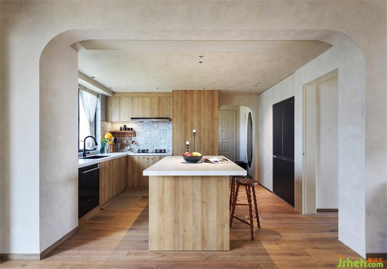 業(yè)主說:“平時也會邀請朋友來家里吃飯,希望餐廳要有一定的社交屬性”,開放的吧臺區(qū)域擴(kuò)大了空間之間的交互性,家人、朋友可以在一起備菜做飯,以后很難看到一個人忙碌的身影啦。廚房這里我非常喜歡的就是這個小花磚,植物元素的花磚,豐富了空間層次感,獨特的枝蔓延伸感,給廚房帶來浪漫的生活氣息,結(jié)合這個木質(zhì)的吊柜和地柜,亞運(yùn)城天峯家裝設(shè)計整體空間營造出了一種復(fù)古優(yōu)雅的韻味,在這個空間,即使做著洗菜等瑣碎事情,我都覺得無比美妙??紤]到收納的問題,廚房除去本身的地柜吊柜還有零食柜,我們還把吧臺下方的空間充分利用上了,在靠近水槽的吧臺下方,我們做了嵌入式的蒸烤箱和洗碗機(jī),在吧臺的另一側(cè)則做了簡單的收納柜,真正做到了將雜亂的物品都收納起來。