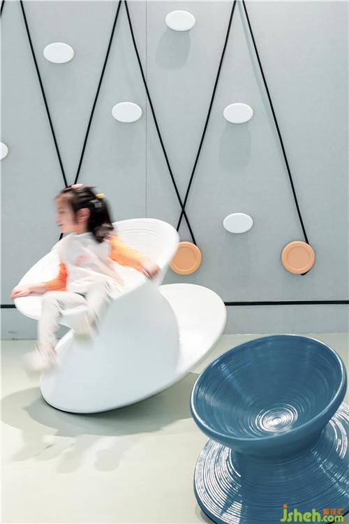 加入平衡陀螺椅以表達(dá)夢境與現(xiàn)實(shí)的空間感受,小朋友們坐上陀螺椅仿佛進(jìn)入夢境里的世界一樣,同時(shí)還能訓(xùn)練平衡感。