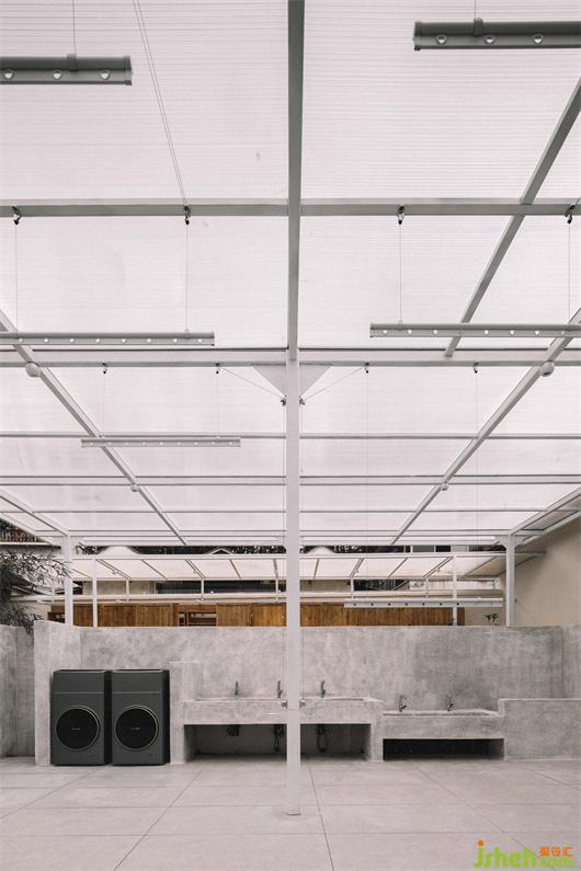 公共衛(wèi)生間利用“雨水為先,自來水為后”的系統(tǒng)設(shè)置收集雨水,同時采用太陽能照明的形式,傳達自然環(huán)保的理念。材質(zhì)的挑選上以自然明亮為主,陽光板屋頂呼應(yīng)了與前場的延續(xù)性,在公共與私密的多功能空間中,讓孩子養(yǎng)成健康的生活習慣,同時給予相應(yīng)的尊重。
