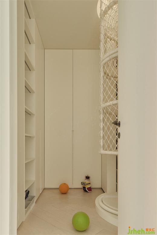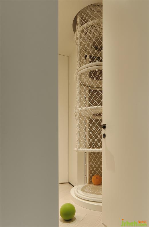 兒童衣帽間藏著的秘密基地——打開(kāi)衣柜的門(mén),一個(gè)編織的通道出現(xiàn)在眼前,“引誘”著小朋友甚至大人鉆進(jìn)去,通過(guò)這里一路爬到閣樓空間。別墅設(shè)計(jì)將趣味的構(gòu)造關(guān)系大膽的融入住宅設(shè)計(jì)之中,不僅僅是一個(gè)為孩子打造的樂(lè)園,也是創(chuàng)造每個(gè)人的理想之國(guó)。讓每一次鉆入爬行都代表一次對(duì)未知的探索旅行,暢游在無(wú)盡的想象與樂(lè)趣之中,是每個(gè)人在與環(huán)境交互之中,反復(fù)操練著好奇心,就好像一直在為自我內(nèi)心深處的童真秘境澆水灌溉出一片森林。
