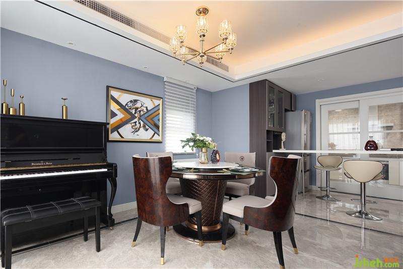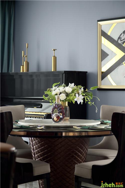 The dining-room of light luxurious style, those who use is circular table, the aureate ornament of table forms echo with sitting room very well, again tie-in yellow pear design and color restore ancient ways, whole dining-room lets host find everything new and fresh. The tableware that passes exquisite decorate, elegant romance, more the romance that rendered repast. Do you want to waste money on a hotel with a romantic restaurant and a few candles?