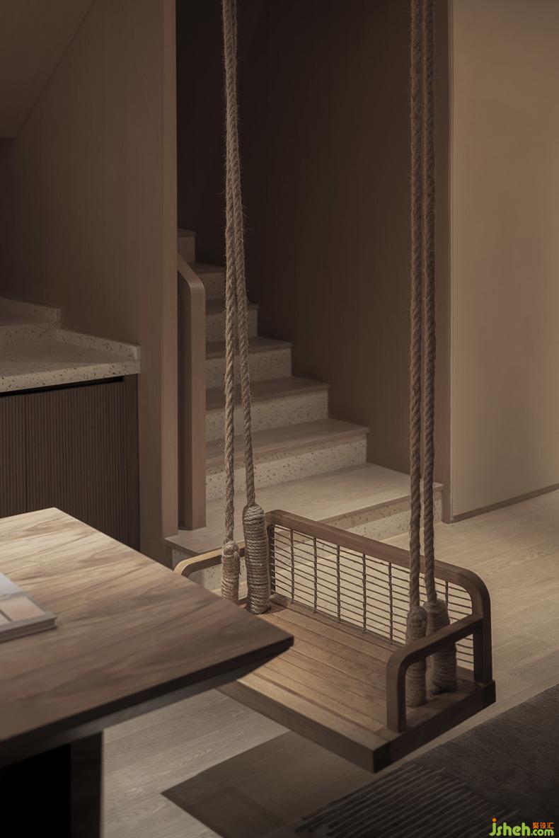 In the survey of the designer's design process, the lion is the most popular theme IP for children, because in the media, the lion has always been regarded as the synonym of courage, courage is the courage to challenge all difficulties. The main materials of the theme parent-child home stay are mainly selected in line with the characteristics of the lion theme: beige texture paint and wood finishes. In addition, a wooden house, swing, wooden horse and a small climbing wall with a symbol of courage are set in the space as the parent-child interaction elements. Parents and children can tell stories and imagine the vivid and interesting Simba Kingdom in the lion theme home stay in the wooden house.