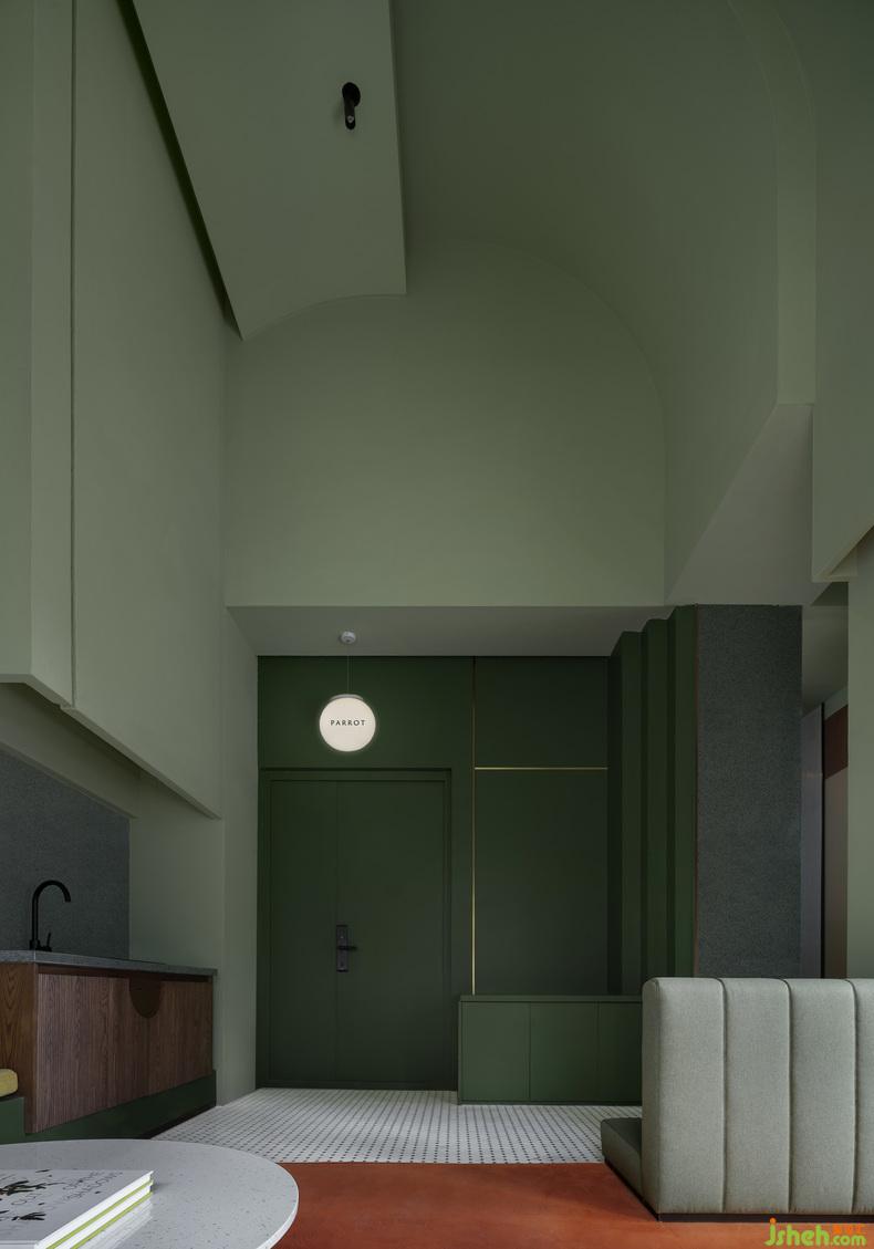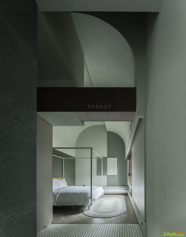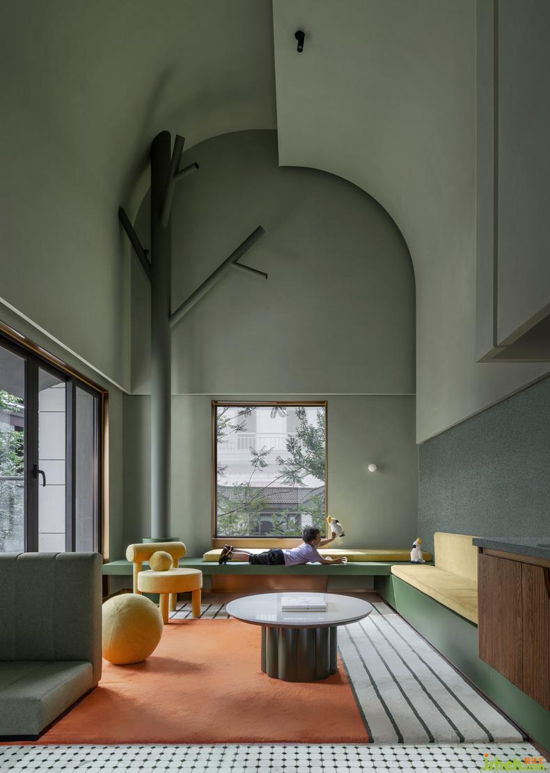"Parrots" themed bed and lodging purposely sets a height of 5.4m, making the whole living room a small world where you can play and communicate. Not only parents, learning to communicate and exchange is an important part of the children into the society. How to express yourself, how to let the other person know what you really think instead of yelling, arguing, telling the other person what you really feel. Parrots have always been the role of good words in people's hearts. The design team hopes that through the parrots theme apartment and the large shared living room, parents and children can communicate with each other in a jungle-like dream world and express their inner love.