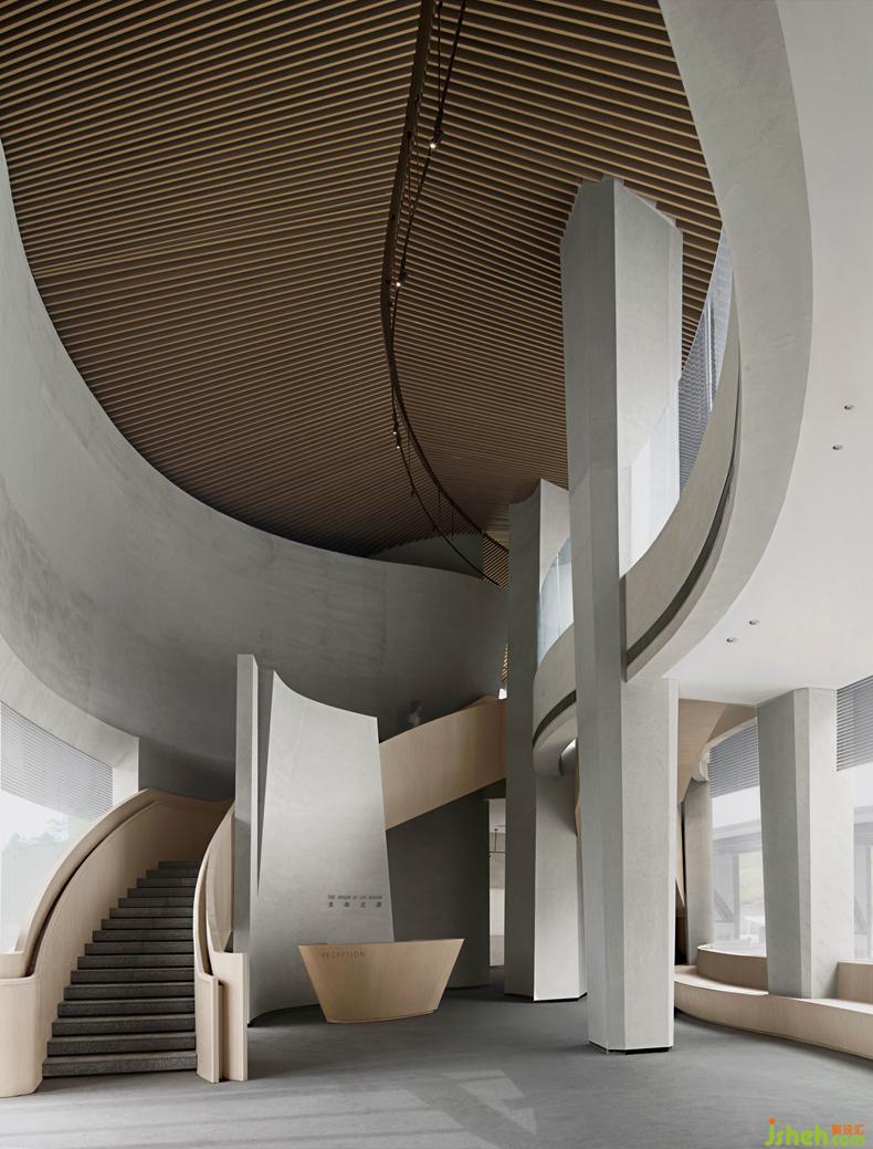 人類軀體中的曲線是生命之源整個(gè)空間構(gòu)成的靈感來(lái)源,設(shè)計(jì)團(tuán)隊(duì)提取我們身體中伸展,曲折,文化展館設(shè)計(jì)起伏的關(guān)系代入到空間,演變出一面面獨(dú)特而別具特色,如同雕塑一般別具美感的三維曲面墻體。