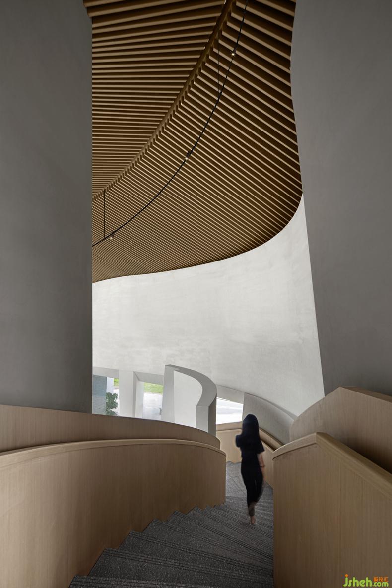 In the design of the whole vestibule of the Origin of Life Culture Museum, the design team runs through the whole vestibule through two curved staircases, one winding up and the other descending. The two staircases are intertwined in the perspective of the vestibule, implying male and female roles in both genders. They are facing each other independently, yet equally.
