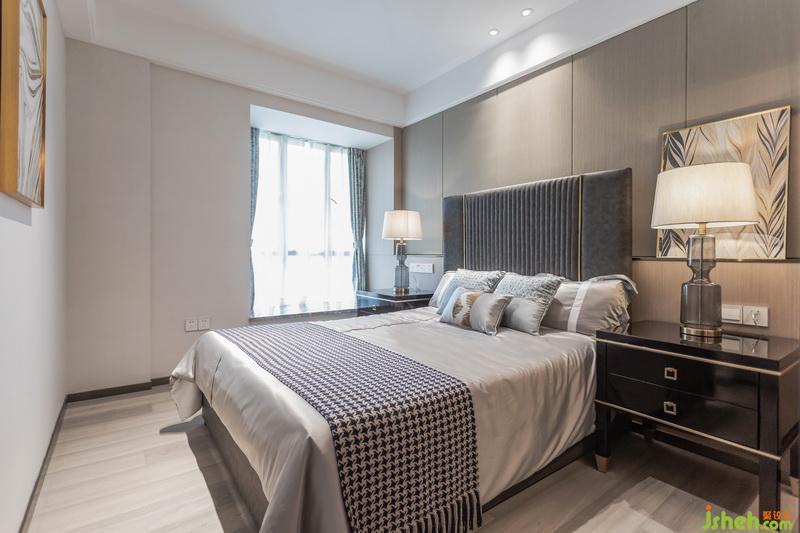 老人房一貫的深沉內(nèi)斂,體現(xiàn)了老人博學(xué)廣見(jiàn)的沉穩(wěn),灰色床頭柜搭配以舒適雅致的床品,在顏色和質(zhì)感的微妙處理下,呈現(xiàn)出寧?kù)o致遠(yuǎn),淡雅從容的晚年生活情景。
