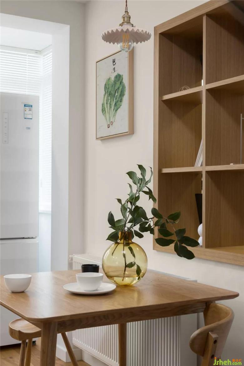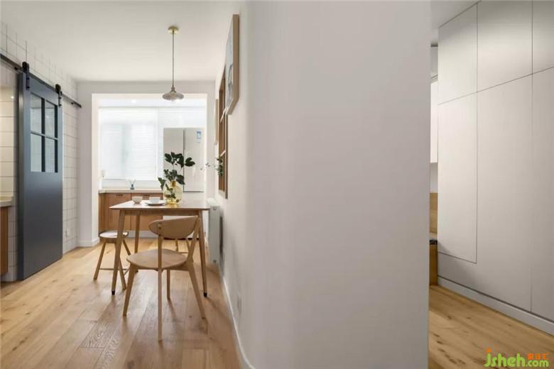 本案屬于典型的“老破小”,戶型特點(diǎn)就是房間大廳小,進(jìn)門處也很狹窄,拿到案子后根據(jù)老房子的樓板走向特點(diǎn)對(duì)格局進(jìn)行了局部調(diào)整。最小的房間把靠近門廳的墻體拆掉大部分做了鞋柜,這樣進(jìn)門就有了儲(chǔ)物空間,門廳處也不會(huì)那么擁擠,另外一邊做的榻榻米和寫字臺(tái),平時(shí)是家人休息的地方,和餐廳之間的墻面做了個(gè)隔板裝飾架,兩個(gè)空間有了溝通的渠道。另一方面設(shè)計(jì)師從人性化角度考慮到這是個(gè)兩孩家庭,且孩子都比較小,就把餐廳和過(guò)道之間的拐角做成了圓弧狀,空間更加流暢且對(duì)于孩子也是一種保護(hù)。