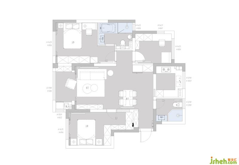 ▲原始平面圖 我家的戶型較為規(guī)整,當初選擇戶型時就想在滿足現(xiàn)階段功能性和經(jīng)濟能力間做個平衡。選擇小戶型,同時能找到一位好的設(shè)計師幫助規(guī)劃就是我們一開始比較明確的方向。但方向明確不代表就找尋順利,過程中也伴隨著對未知結(jié)果的不安,對龐雜信息篩選的煩躁...在熬過好幾個大夜,翻找各種平臺,看過難以計數(shù)的案例后,終于找到自己心儀的設(shè)計師人選@張兆娟 初遇娟姐是在某星爸咖啡館,她隨和的性格和爽朗的笑聲令我們印象深刻,更重要的是她沒有對我們繁多的要求不耐煩,反倒是認真記錄,仔細傾聽。當時我們的幾大訴求是:1. 保留2個衛(wèi)生間,同時最好有一個能放下浴缸;2. 廚房蒸箱、烤箱、洗碗機等電器要上,高低臺,雙開門冰箱,柜子要多;3. 作為一枚博士生,要有獨立書房,但最好又能滿足臨時客房、機動琴房等需求;4. 主臥要有書桌,閱讀區(qū)要多,客廳不要傳統(tǒng)電視墻,想要整面書架 5. 色調(diào)溫暖,豐富,有質(zhì)感...