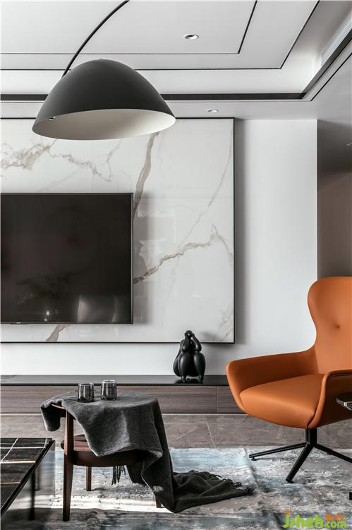 爆點(diǎn):橙色現(xiàn)代感單椅。打破寧?kù)o,點(diǎn)亮空間。裝修設(shè)計(jì)