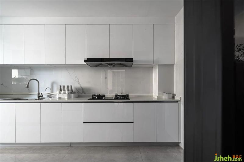 極簡到骨子里的廚房,減視覺,豐富味覺,清一色的白更干凈透徹。