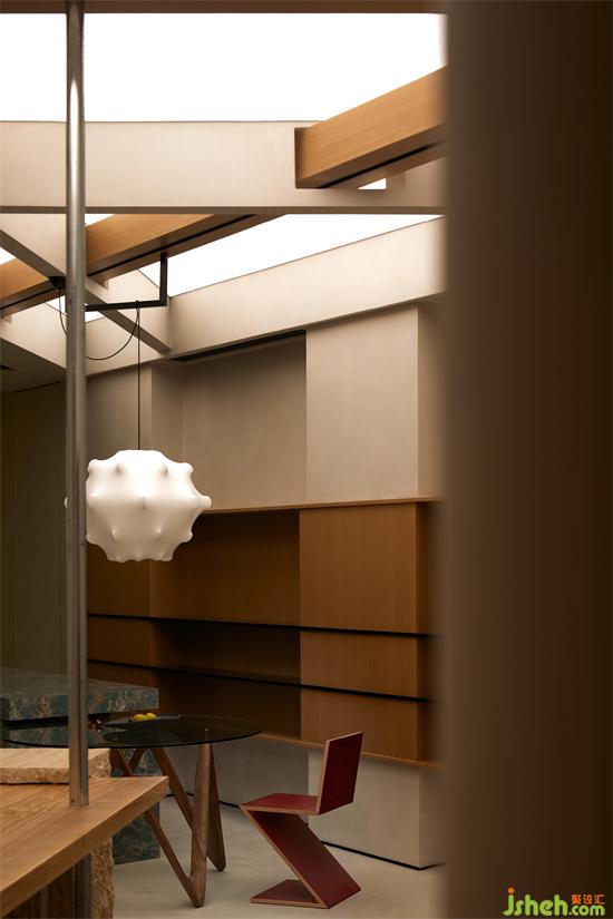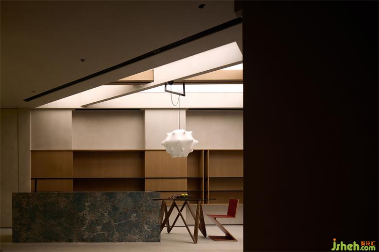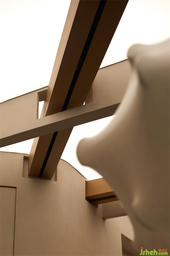 作為燈光展廳,光是重要的主角,通過技術(shù)的支持和設(shè)定,在“梁結(jié)構(gòu)”的背面形成一道“光面”的圖層,隨著時間的變化,呈現(xiàn)出自然光照真確的強弱、明暗、朦朧與清晰邊界的面貌。展廳設(shè)計家居空間之中,起居室向來有著舉足輕重的分量,根據(jù)場景的不同需要,光由點狀、線形、塊面、圖案元素等豐富形態(tài)暈染而出。