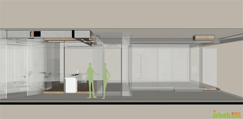 黑川雅之在描述日式的傳統(tǒng)住宅時,形容障子門窗為“光墻”,光透過障子紙顯露了曖昧的、隱約的、含蓄的東方意韻。相對于封閉的暗空間,展廳設計以“光墻”為窗的處理方式似乎變得妙不可言,因為“窗”暗示了外部的世界,以透光石云為載體,水色迷濛氤氳、草木影綽婉約的經(jīng)營,令自然生動的氣息撲面而來。