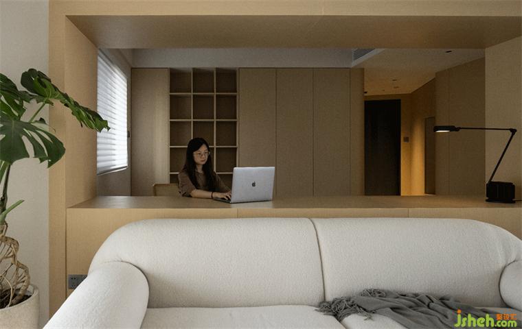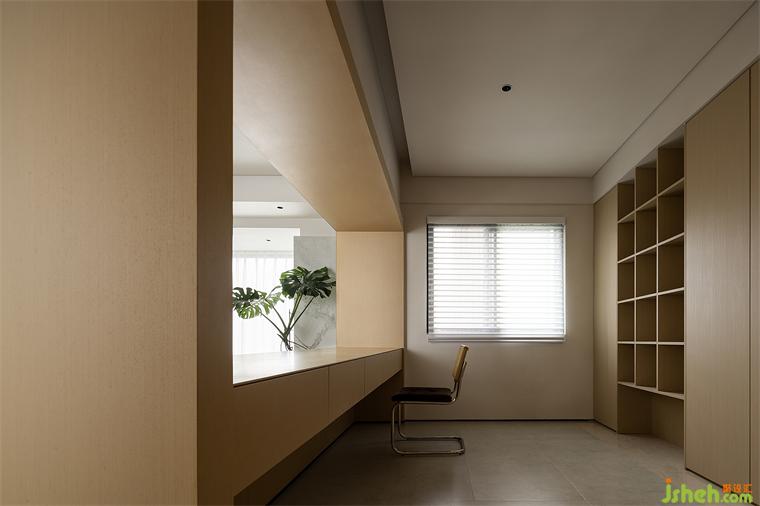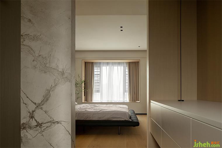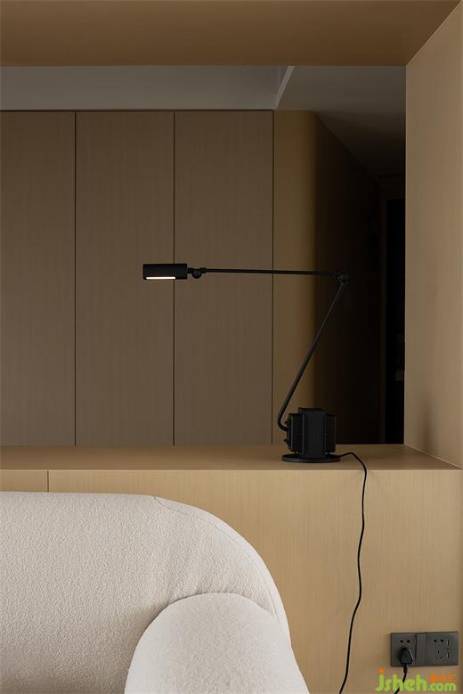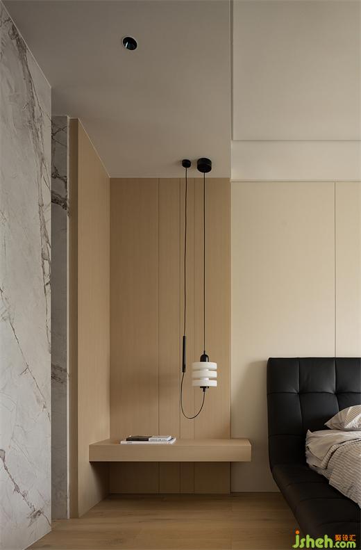 允許自然介入空間,就是一種設(shè)計(jì)智慧。甄選淺調(diào)中性色,增添寬窄不一的線紋,定格雨滴落下的軌跡,縈繞出寧靜的視覺聲感,相伴茂盛枝葉與水滴形綠意,掀起清新氣息。通過木板上墻造型,過渡睡眠區(qū)與衣帽間,令人歸屬本真生活,期待詩與遠(yuǎn)方。