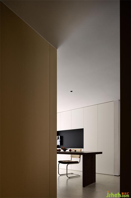 餐廳獨(dú)具采光優(yōu)勢(shì),秉承簡(jiǎn)約格調(diào),減少瑣碎裝飾,裝修設(shè)計(jì)以復(fù)刻手法再現(xiàn)電視背景墻的氣韻,讓黑與白激蕩出的優(yōu)雅風(fēng)情悄然蔓開,對(duì)就餐體驗(yàn)產(chǎn)生愉悅的影響。島臺(tái)拼合桌椅,自成回環(huán)動(dòng)線,編織元素、亮澤金屬、暖咖飾面,創(chuàng)造出新的煙火溫度。