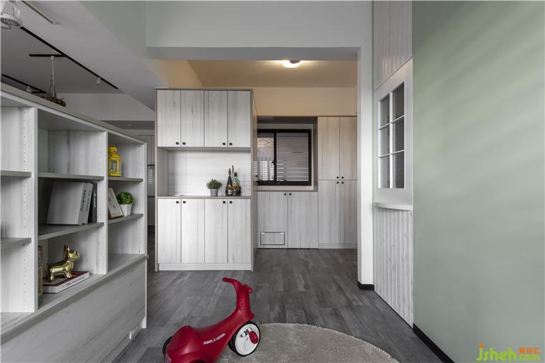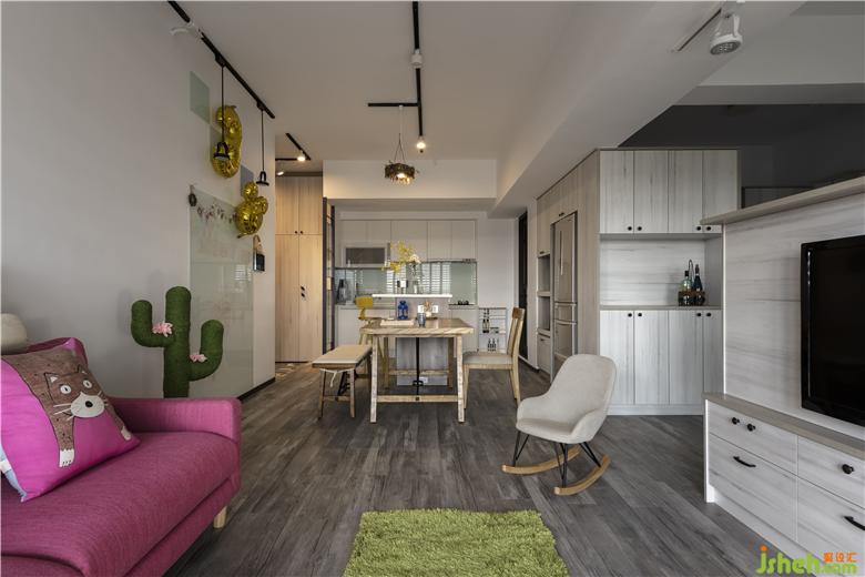 本案為設(shè)計(jì)給一對年輕夫妻及一個(gè)活潑好動的小男孩,還有兩只貓兒,是屋主給兒子的禮物。在設(shè)計(jì)上偏好光線明亮、動線流暢無拘束,色彩要豐富,建材無毒環(huán)保并帶入一點(diǎn)歐美時(shí)下最盛行的「剎寂美學(xué)」的元素。