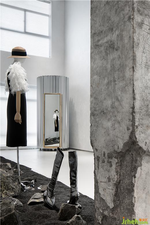 空間材質(zhì)分別用:不銹鋼,鏡子,玻璃,水泥,鋼板,舊木頭等。凱莉莫斯設(shè)計師品牌藝術(shù)館設(shè)計材質(zhì)和面料之間是相互作用的,材質(zhì)的碰撞讓我們能在空間感受到過去,現(xiàn)在,和未來。