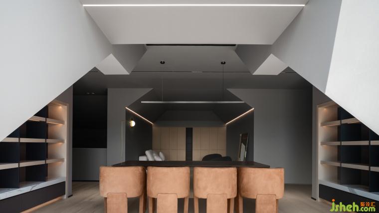 作為主要社交場所,會客區(qū)的設(shè)計(jì)優(yōu)雅、寧靜,同時(shí)功能齊全。開放式設(shè)計(jì)讓人與人之間的距離感消失,增進(jìn)了彼此間的親密感。高品質(zhì)的墻面飾面與藝術(shù)裝飾共同構(gòu)成了一個低調(diào)奢華且充滿藝術(shù)氣息的空間。每一個細(xì)節(jié)都經(jīng)過精心考量,空間的布局讓人感受到一種流動的美,仿佛時(shí)間在這里變得更加緩慢,讓人陶醉于溝通交流的樂趣與美好之中。