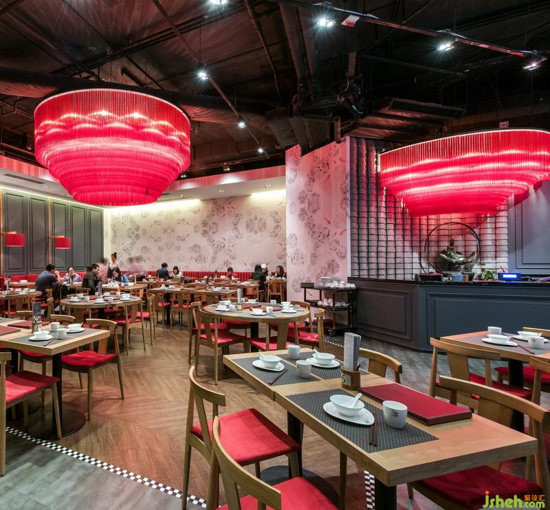 在燈籠光源不及的地方,白色射燈便有了用武之地。不僅點(diǎn)亮了黑白壁紙與整體空間,還令這一籠籠點(diǎn)心更為鮮亮誘人。餐廳設(shè)計(jì)