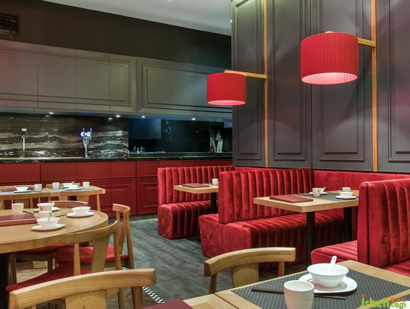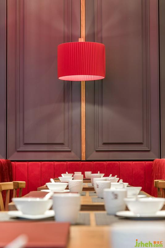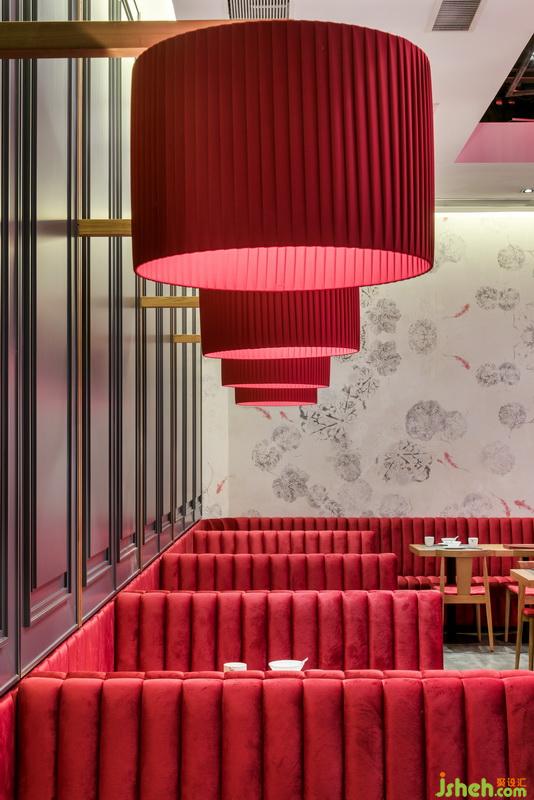 點(diǎn)一龍內(nèi)的餐桌設(shè)置大致分為兩種,最多的便是兩人桌與四人桌。略帶金絲的木質(zhì)桌椅仿佛溫潤(rùn)的茶水,完美融入店內(nèi)大氣雅致的腔調(diào)之中??ㄗ鶆t比其他座位濃艷了許多,絲絨之感的座位與同色系燈籠相映成趣。慵懶地蜷縮在柔軟沙發(fā)上,抿一口清茶,吃幾籠點(diǎn)心,在這個(gè)燈紅酒綠之都,尋找一份慢節(jié)奏的愜意。餐廳設(shè)計(jì)