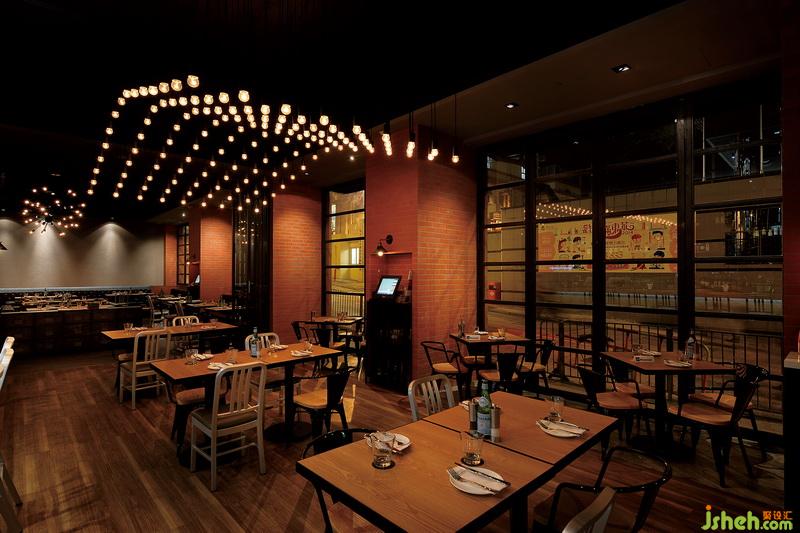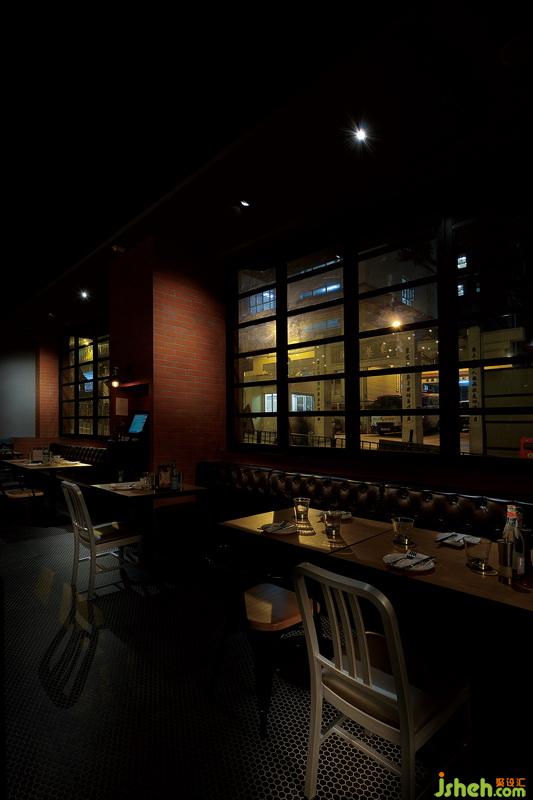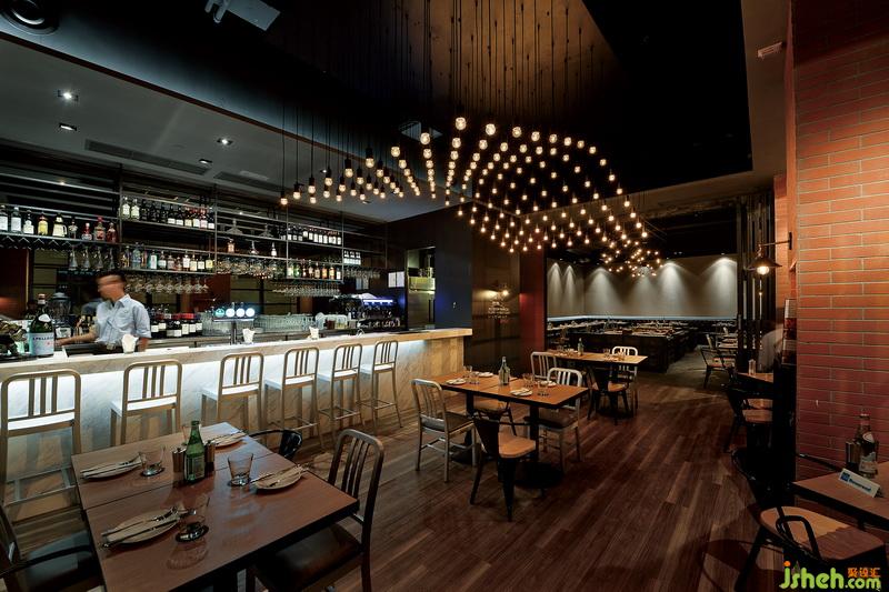 吧臺的燈光將視覺動(dòng)態(tài)延伸到了卡座區(qū)域
