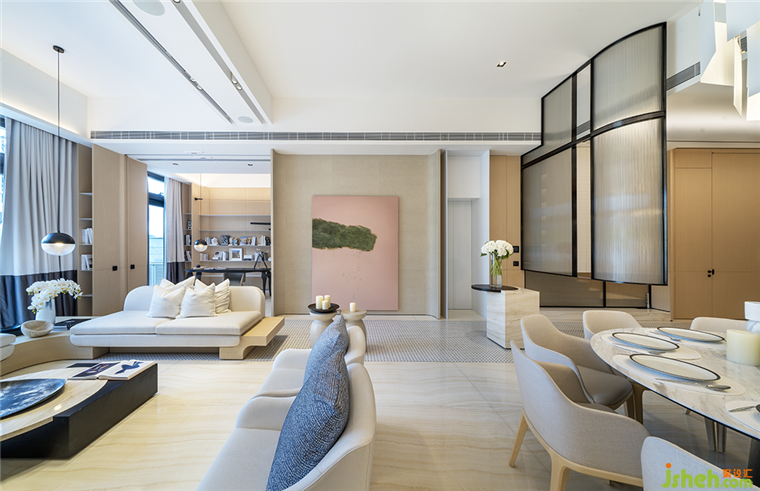 別墅裝修設(shè)計空間主格調(diào)為低飽和度的白色和暖色系,精簡干凈,卻不寡淡。大型畫作,看似隨意實則精心陳列,散發(fā)出濃郁藝術(shù)氣息與生命力。