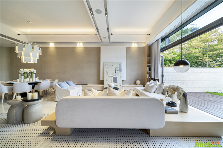 這座兩層式的別墅位于香港馬鞍山碧桂園泓碧住宅區(qū),配套私家花園泳池與頂層天臺,別墅裝修設(shè)計坐擁自然景觀及吐露港開揚海景等絕佳的先天條件。Danny受邀擔(dān)綱室內(nèi)設(shè)計,營造出遠(yuǎn)離城市喧囂的優(yōu)雅從容與藝術(shù)簡約的自然居所。