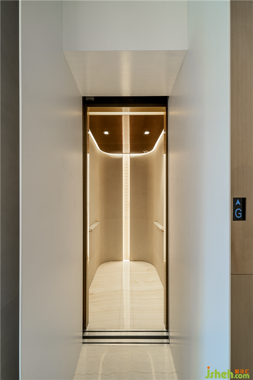 別墅裝修設(shè)計(jì)弧形半通透玻璃吊屏風(fēng)巧妙設(shè)置于入口走廊,呼應(yīng)著空間局部的弧形線條,靈巧無聲的光線穿透屏風(fēng)形成游移。線形裝飾燈貫穿于每個空間,既有功能性亦加強(qiáng)空間的線條美與韻律感。
