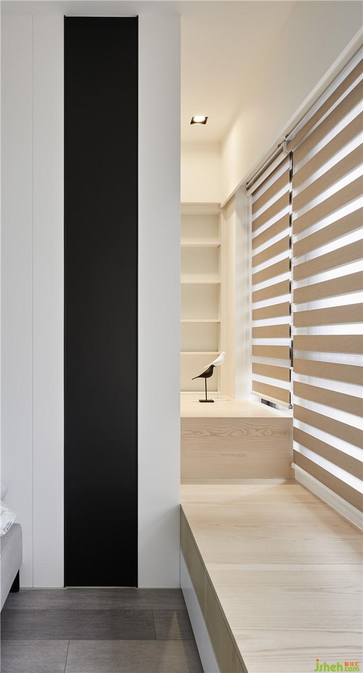 房間入口上方的梁利用燈帶的手法弱化壓迫感